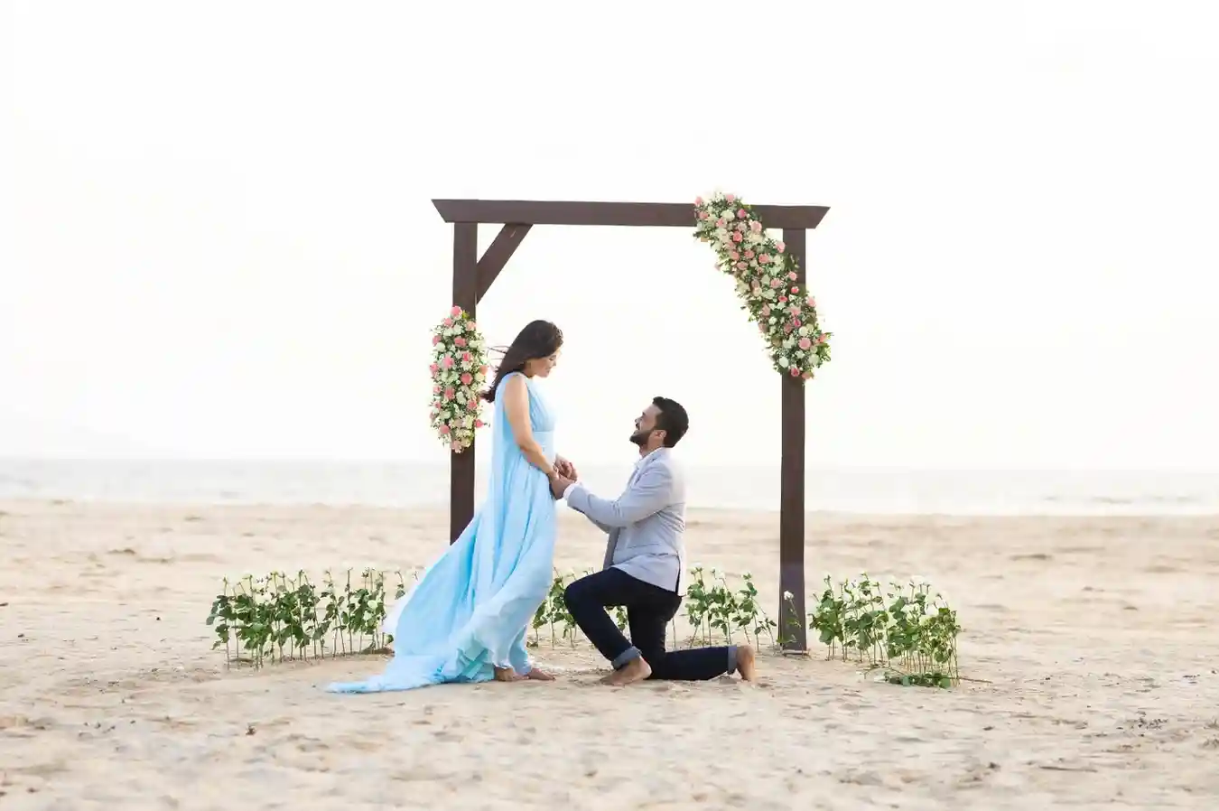 For a pre-wedding shoot in Goa, opt for light, breezy clothing that complements the beach vibe. Flowing dresses, casual shirts, and comfortable footwear are ideal. Bold colors and patterns can add a fun, romantic touch to your photos.